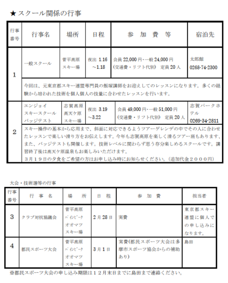 2025-2026シーズンの行事予定です。